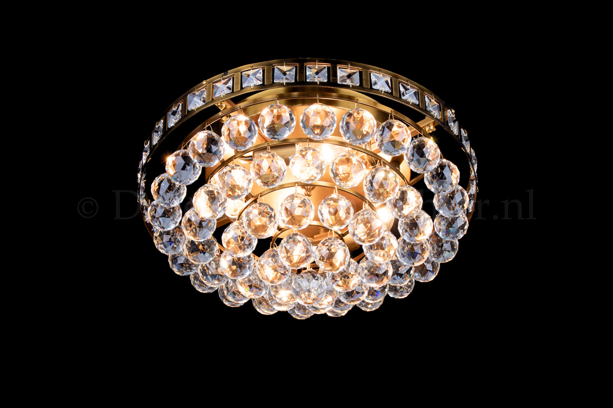 This classic yet timeless ceiling lamp has 4 lights and a diameter of 15.75 Inch (40 centimeters). This ceiling lamp is made of beautiful crystal and has a gold border. The Amanda crystal ceiling lamp of 7.9 Inch (20 cm) height gives your room a warm and atmospheric look. A beautiful ceiling lamp for a dream price! Order now.