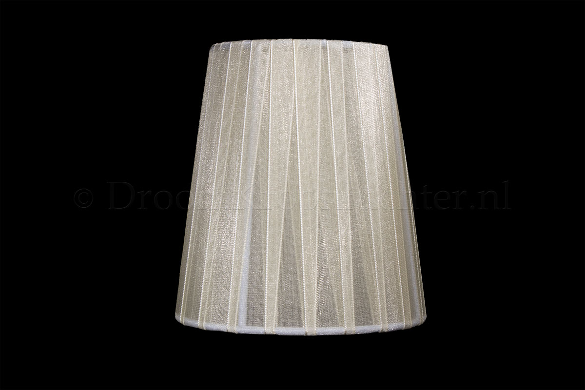 Deze nieuwe gebroken witte dubbel gestoffeerde organza lampenkapjes zijn speciaal ontworpen en geschikt voor bovenop de lampen van kroonluchters. De lampenkapjes die gemakkelijk op de lichtbronnen van een kroonluchter geklemd kunnen worden geven uw kroonluchter een geheel andere en nieuwe uitstraling. Het van de lampjes afkomende licht geeft de kapjes een unieke kleur, uitstraling en sfeer die in huis zeker ten goede komt.