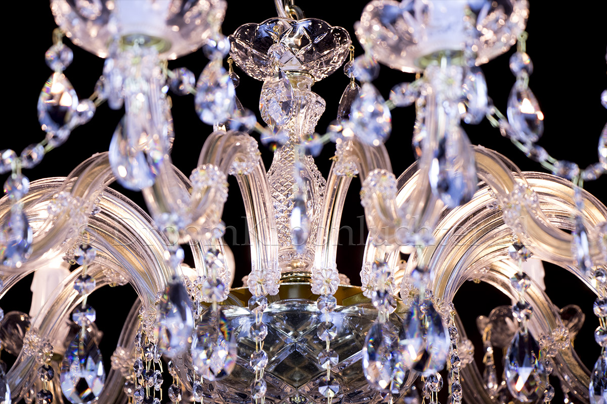 Een prachtige kristallen kroonluchter met 28 lichtpunten verdeeld over 3 lagen. De Maria Theresa 28 ..