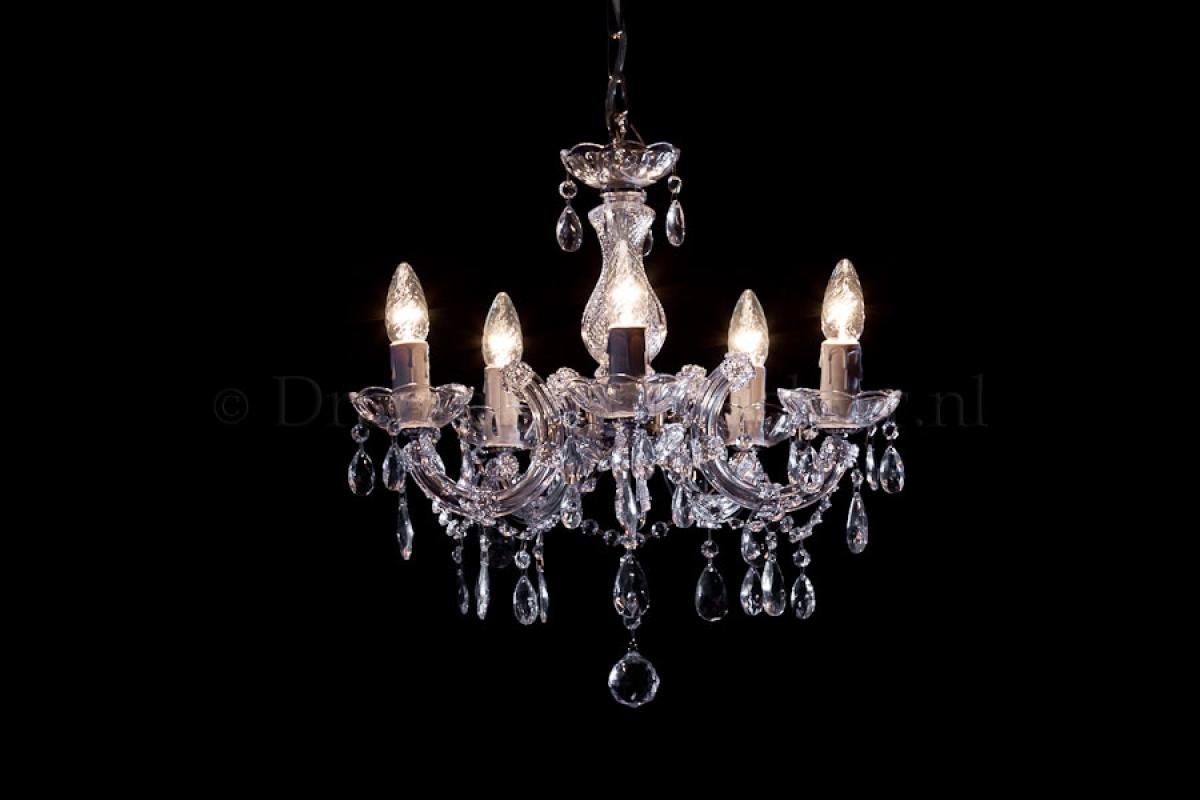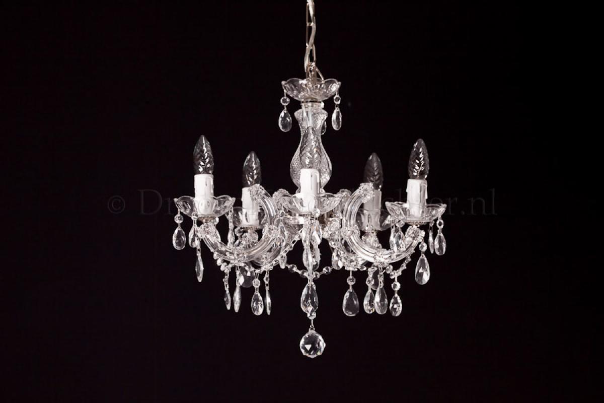 Uitverkocht Kroonluchter Maria Theresa 5 lichts C-arm (glas/chroom) - Ø45cm - Maria Theresa Kroonluchters