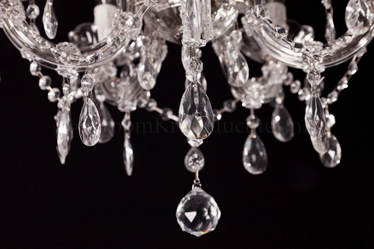 Maria Theresa kroonluchters worden over het algemeen gekenmerkt door hun sierlijke vorm en luxe uitstraling. De klassieke kroonluchter met sierlijke armen zijn voorzien van glasdiamanten en vol glazen schalen. Met deze kroon in huis beschikt u over een tijdloos kroonjuweel.  De ketting en plafondplaat worden uiteraard in gelijke kleur bijgeleverd.