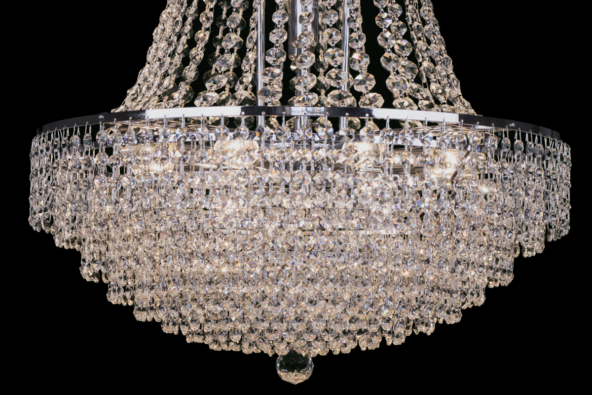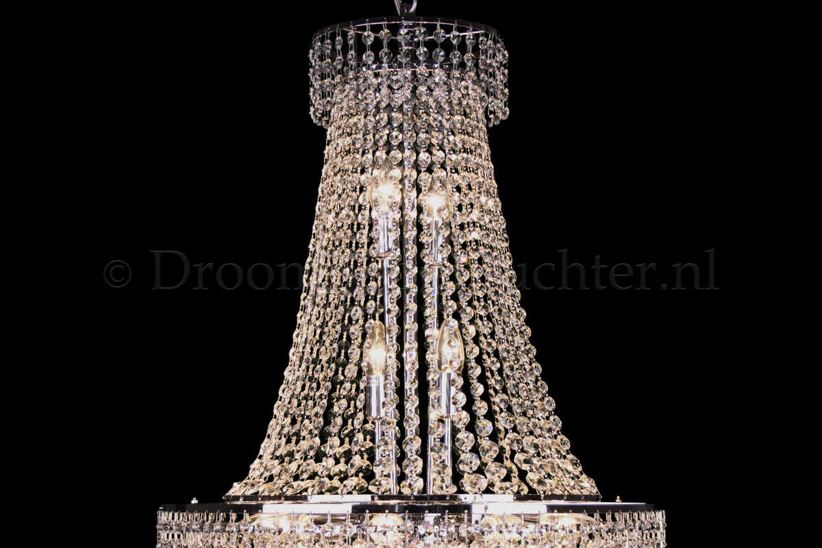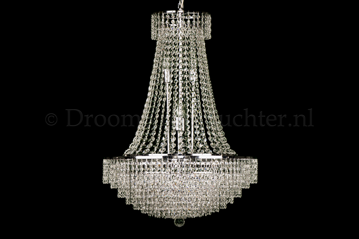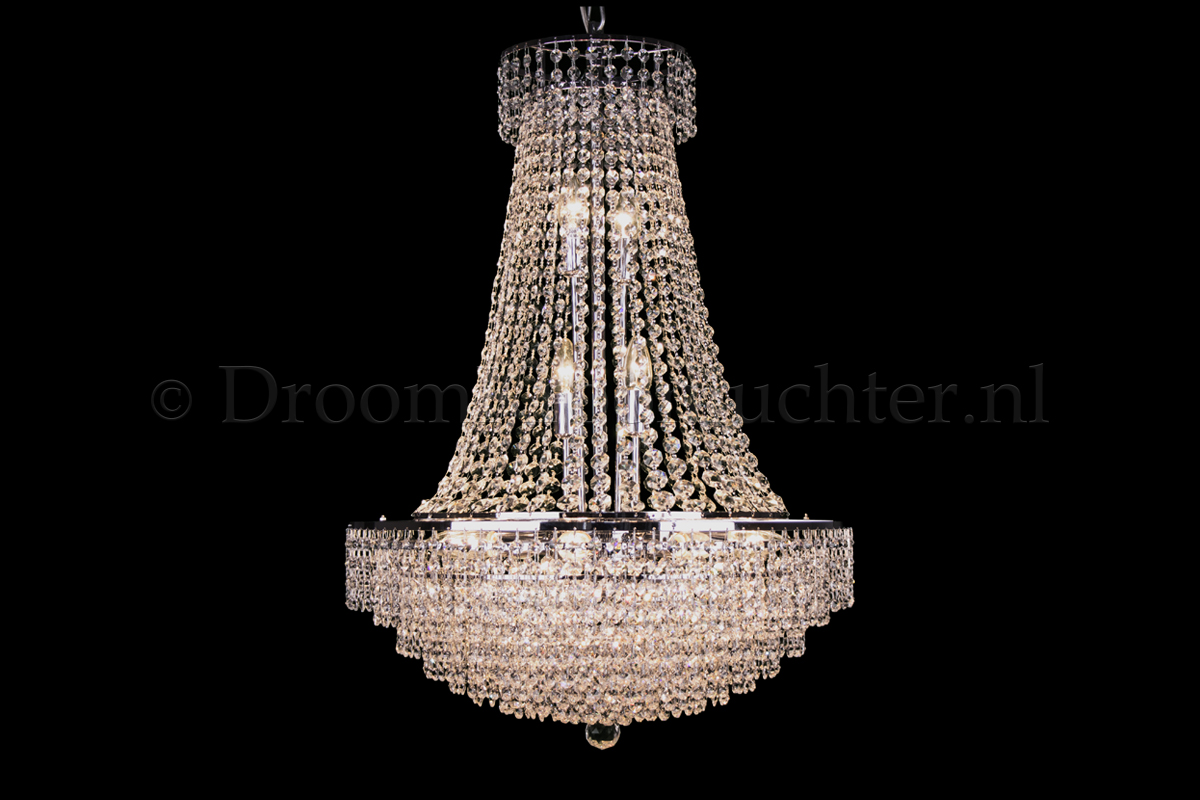 Deze klassieke en meerlaagse zakkroonluchter heeft 15 lichtpunten, een diameter van 58 centimeter en een hoogte van 80cm. De onderkant bevat 9 lagen vol kristal. Deze zakkroonluchter is uitgevoerd in prachtig kristal en voorzien van chromen randen. De kristallen zakkroonluchter geeft uw ruimte een warme en sfeervolle uitstraling.Een mooie zakkroonluchter voor een droomprijs! Nu te bestellen.