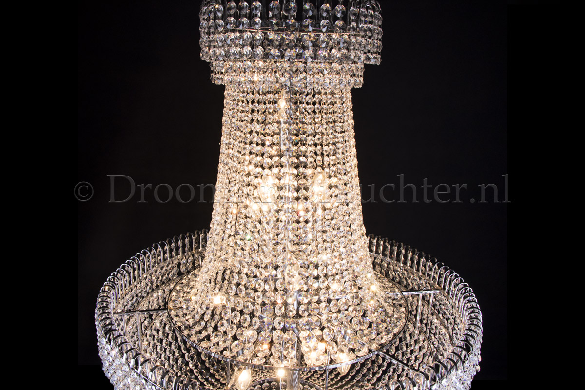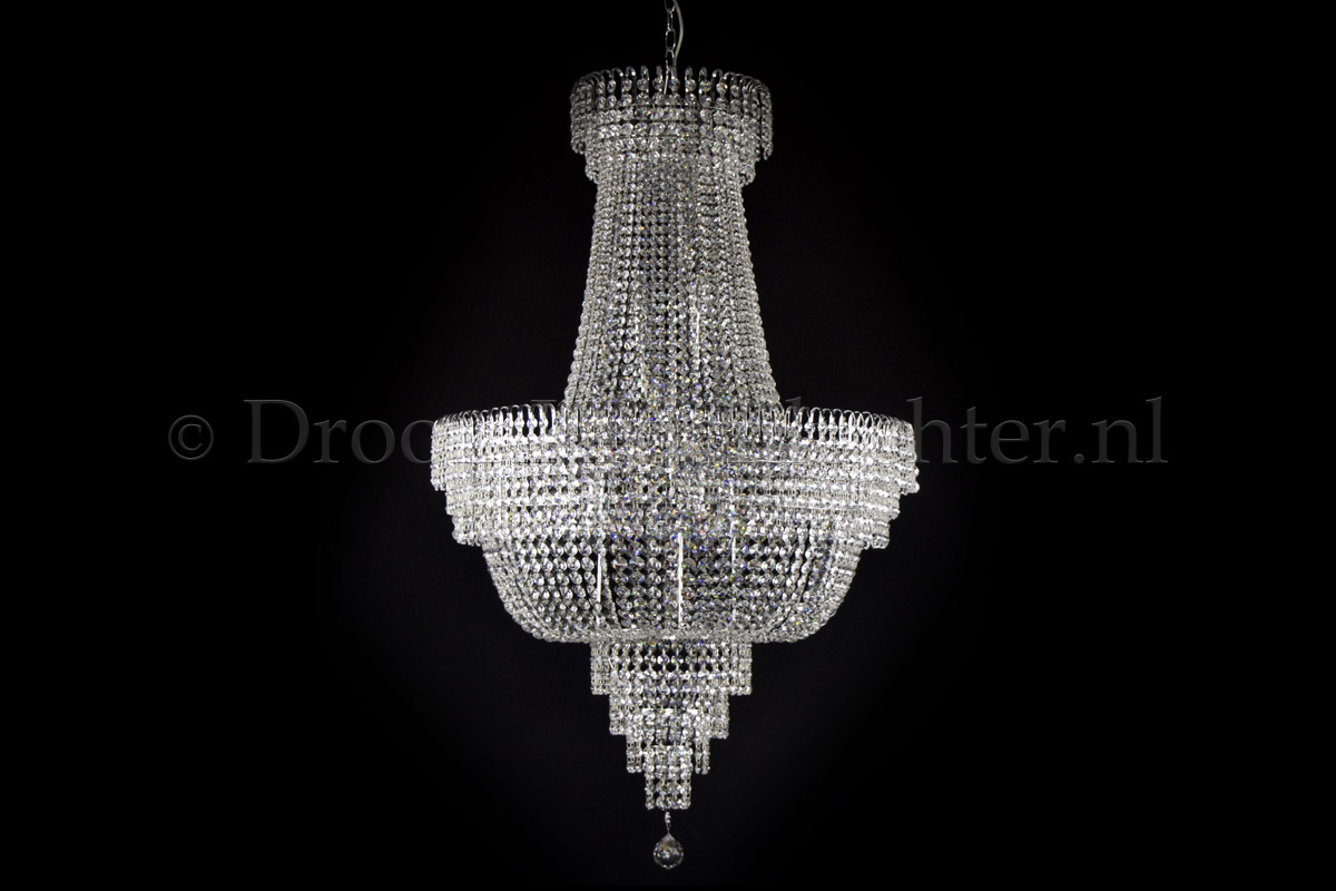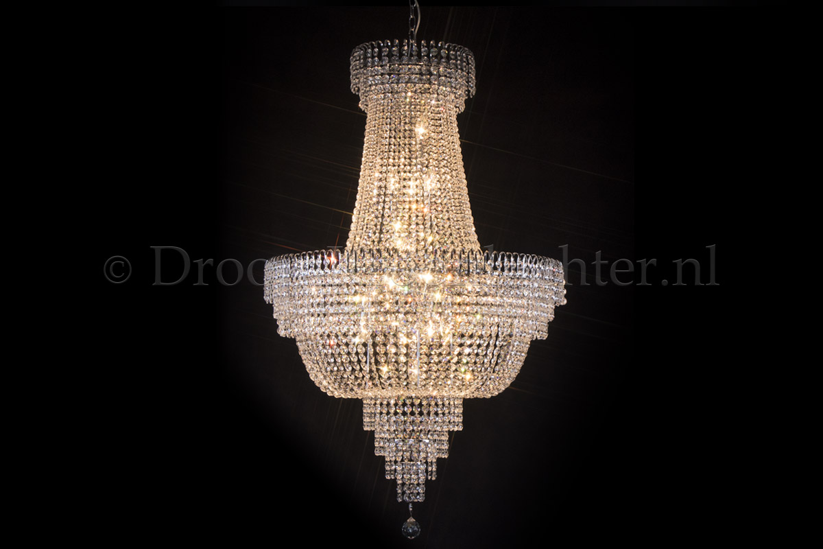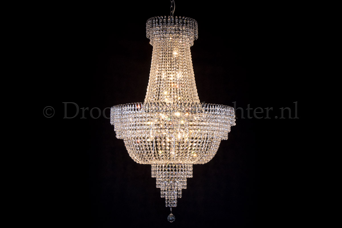 Deze klassieke en meerlaagse zakkroonluchter heeft 19 lichtpunten. De diameter is maar liefst 80 centimeter en een hoogte van maar liefst 130cm. Deze zakkroonluchter is uitgevoerd in prachtig kristal en voorzien van chromen afwerking. De kristallen zakkroonluchter geeft uw ruimte een warme en sfeervolle uitstraling.Een mooie zakkroonluchter voor een droomprijs! Nu te bestellen.