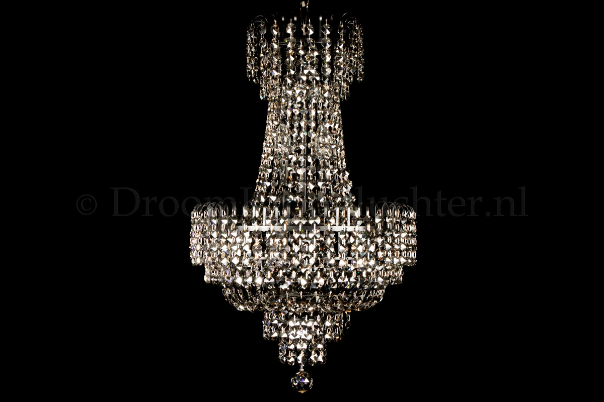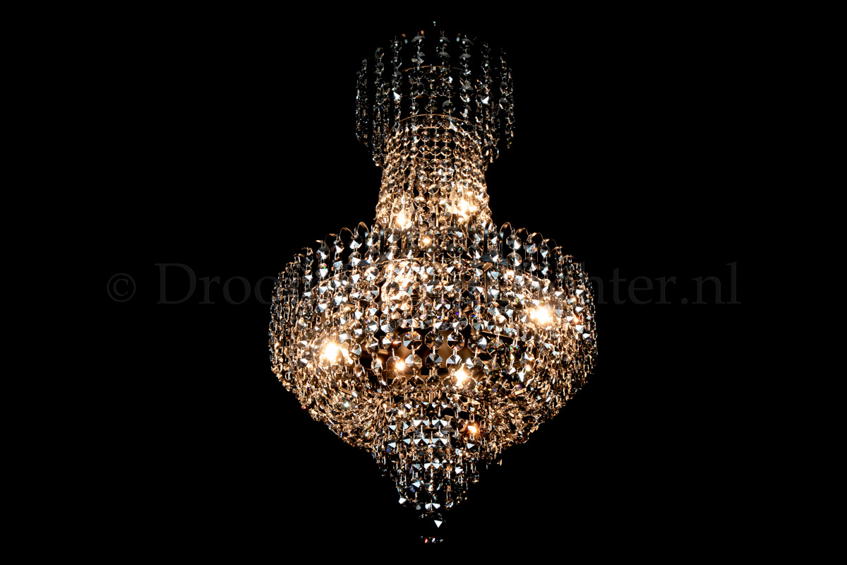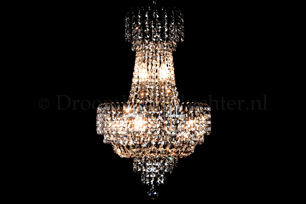 Deze klassieke en meerlaagse zakkroonluchter heeft 6 lichtpunten, een diameter van 40 centimeter en een hoogte van maar liefst 70cm. Deze zakkroonluchter is uitgevoerd in prachtig kristal en voorzien van matzwarte randen. De kristallen zakkroonluchter geeft uw ruimte een warme en sfeervolle uitstraling.Een mooie zakkroonluchter voor een droomprijs! Nu te bestellen.