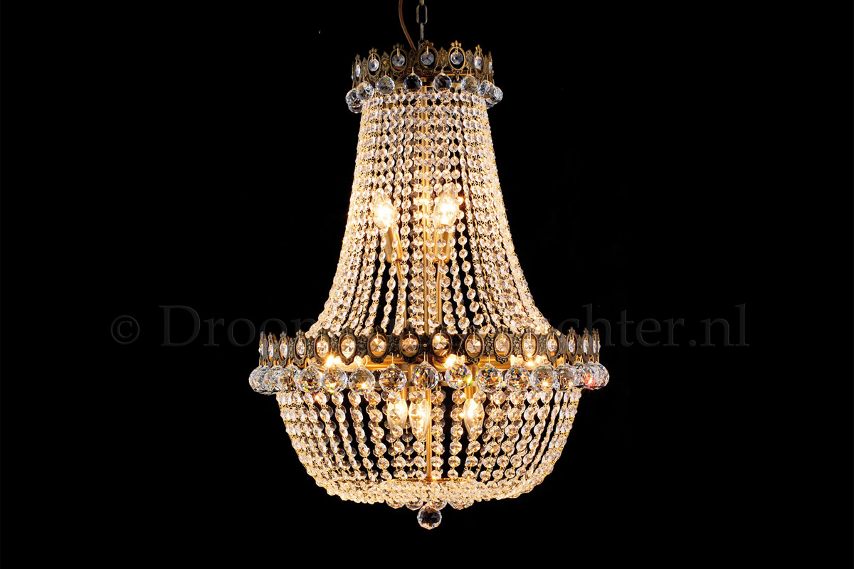 Een prachtige zakkroonluchter met 12 lichtpunten en een diameter van 60cm en een hoogte van ca. 85cm. De Royale hanglamp kroonluchter is uitgevoerd in goud en heeft een perfecte afwerking met bewerking. Het armatuur is van verchroomd metaal. De strengels zijn hoge kwaliteit glasdiamanten met een schitterende bol aan de onderkant.De Royale zakkroonluchters worden gekenmerkt door hun sierlijke vorm en luxe uitstraling. Met deze hanglamp in huis beschikt u over een tijdloos kroonjuweel. De ketting en plafondafdekking worden uiteraard in gelijke kleur bijgeleverd.Sluit u de lamp aan op een dimmer? Dan brengt u altijd de juiste sfeer in huis.Een mooie zakkroonluchter voor een droomprijs! Nu te bestellen.Onze kroonluchters worden exclusief lichtbronnen geleverd. Deze kunt u meebestellen.