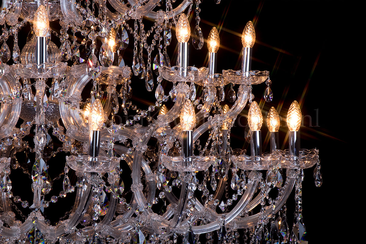Een prachtige kristallen kroonluchter met 28 lichtpunten verdeeld over 3 lagen. De Maria Theresa 28 ..