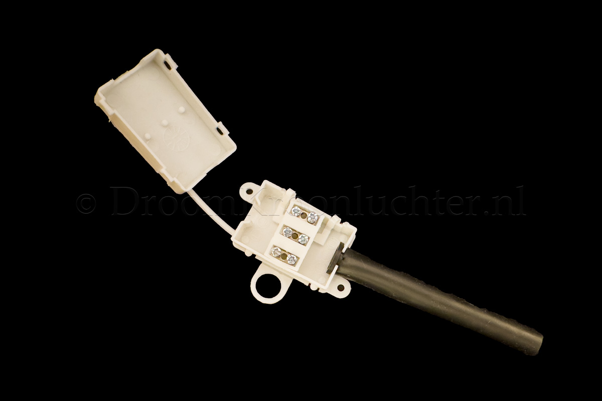 Wanneer u twee electrische snoeren wilt verbinden is deze kroonsteen de veilige manier. Na het verbinden sluit u de lasdoos, waardoor de kabels mooi opgeborgen zijn, en dubbel geïsoleerd zijn, volgens de veiligheidsvoorschriften van de Europese Unie.