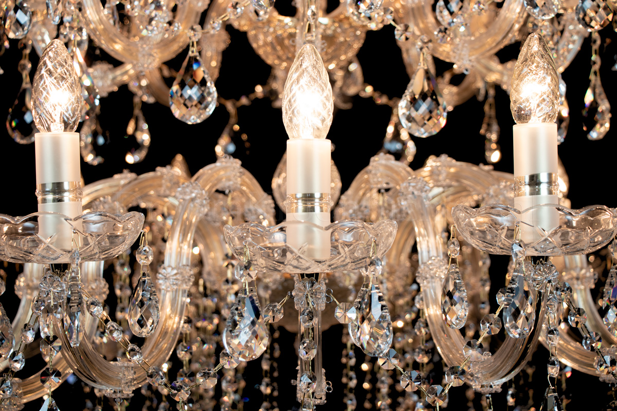 Bij de Luxe uitvoering van de Maria Theresa kroonluchters zijn de schalen en de middenkolom of siervaas zijn gemaakt van glas. De armatuur is van hoge kwaliteit metaal, en de armen hebben een volglazen coating. Bovenop de sierlijke schaaltjes zit een metalen huls, welke omsloten is door een melkglazen huls, zodat het geheel een zeer luxe uitstraling heeft.